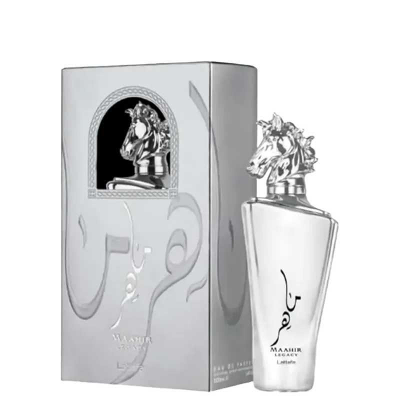Maahir Legacy é um perfume importado Lattafa masculino amadeirado aromático. Conta com uma fragrância intensa e envolvente.